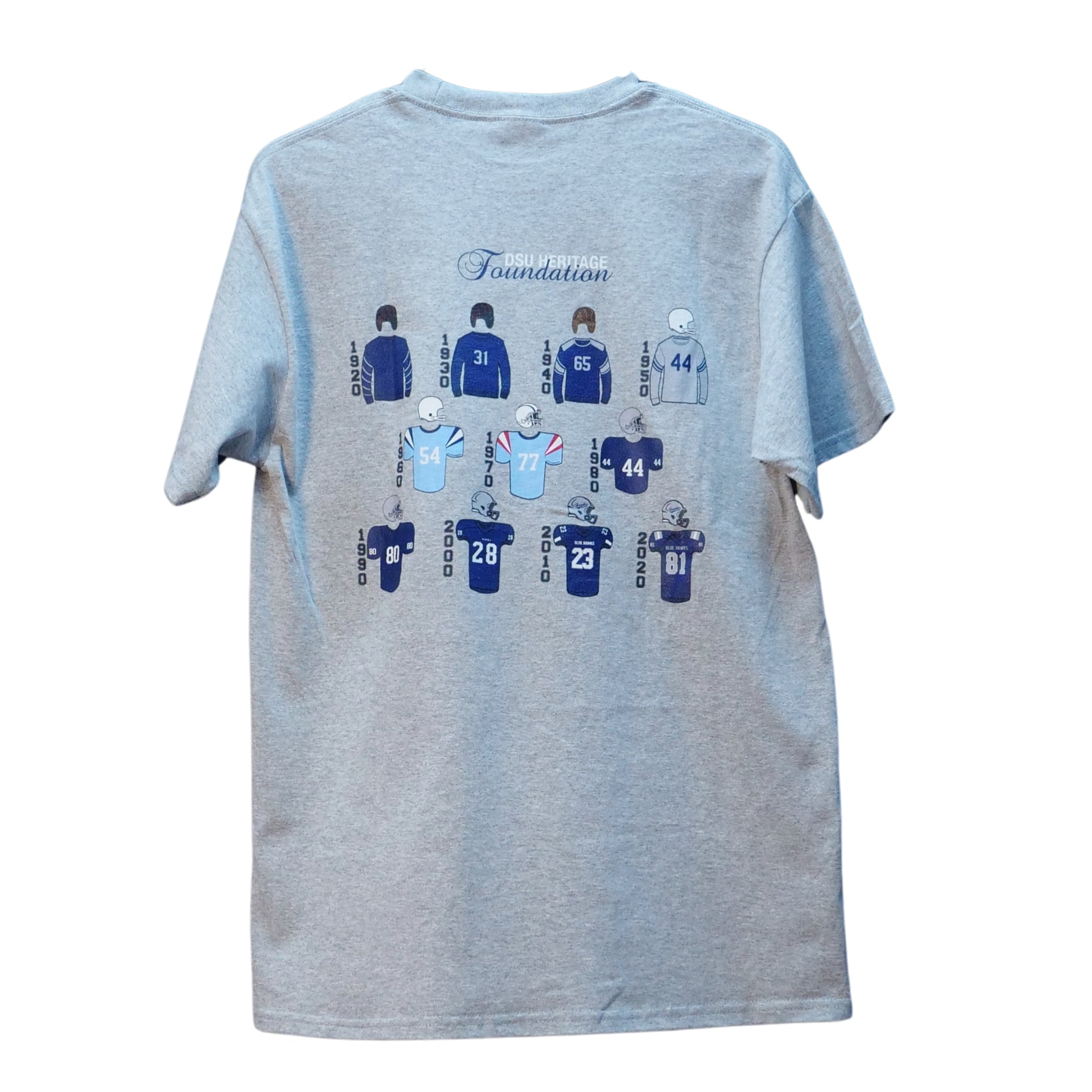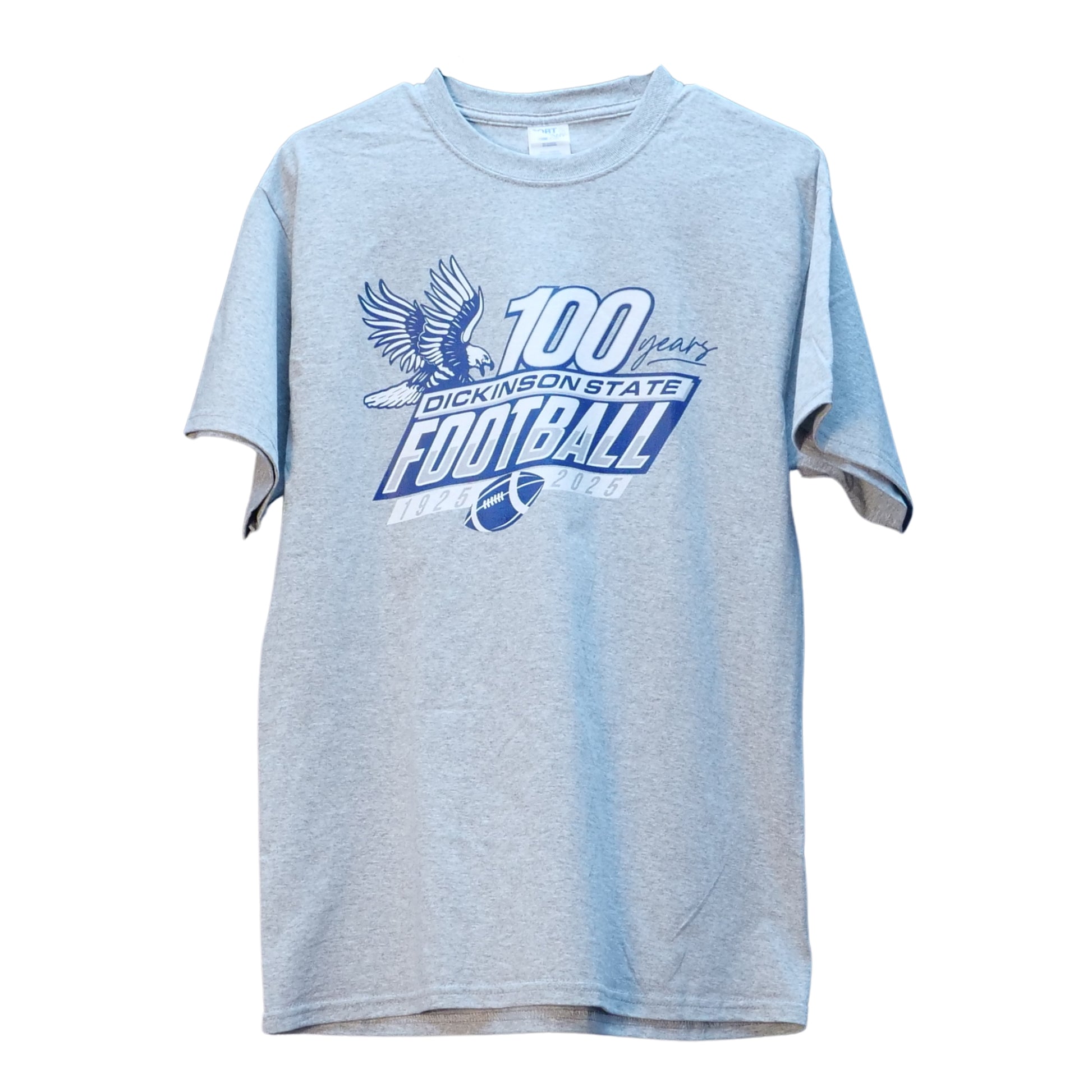 This t-shirt is a great find for any Dickinson State fan or alumni. It’s a commemorative piece celebrating 100 years of DSU Football, featuring a unique design that honors the program's long-standing history. The soft, breathable cotton-poly blend allows for all-day comfort at the stadium, on campus, around the house, or just out and about.